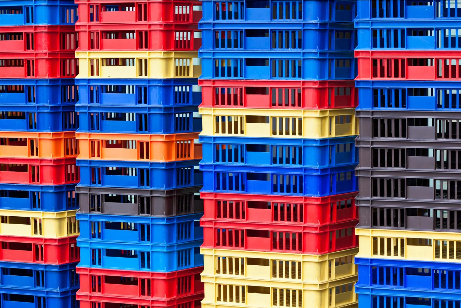 - Stackable crates make warehouse storage easier and more organized.